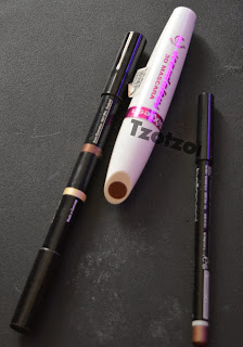 Avon super shock διπλό μολύβι-σκιά ματιών.Απο την μια πλευρά είναι καφέ και απο την άλλη μπεζ.Το τοποθετώ στο κάτω βλέφαρο για πιο έντονο αποτέλεσμα ή για χοντρή γραμμή eyeliner και το σβήνω προς τα έξω και πάνω για πιο φυσικό αποτέλεσα.