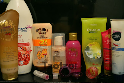 4) και 5)Αντηλιακά απο την Hawaiian tropic.Στο αντηλιακό προσώπου μου έχει μείνει μικρή ποσότητα για μια χρήση ακόμα,ενώ του σώματος το τελείωσα.Βαθμός και στα δυο 5!