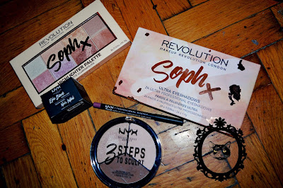 Γεια σας!Σήμερα θα κάνουμε μακιγιάζ,με βασικά προϊόντα απο την Makeup Revolution και τη NYX!Θα χρησιμοποιήσουμε την παλέτα της Revolution,SophX eyeshadow και Highlighter και απο τη NYX,την παλέτα 3 Steps to sculpt,το Eyeliner,Epic Black και το μολύβι χειλιών Lavender and Lace.